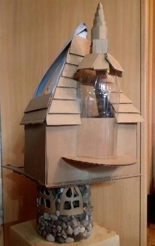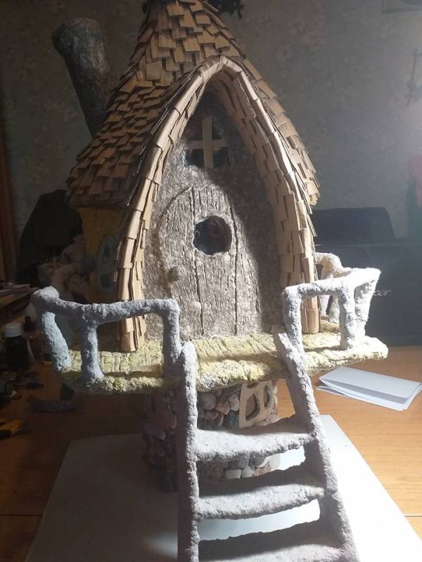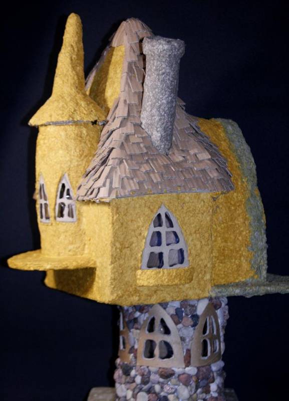 Ramy okien póki co zrobione są z grubej tektury na którą nakładać będę dopiero papkę celulozową, którą widać już na drzwiach zameczku