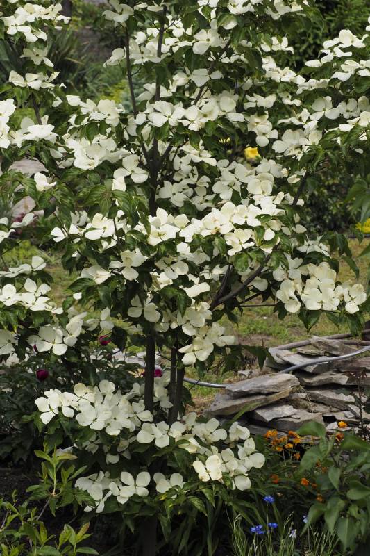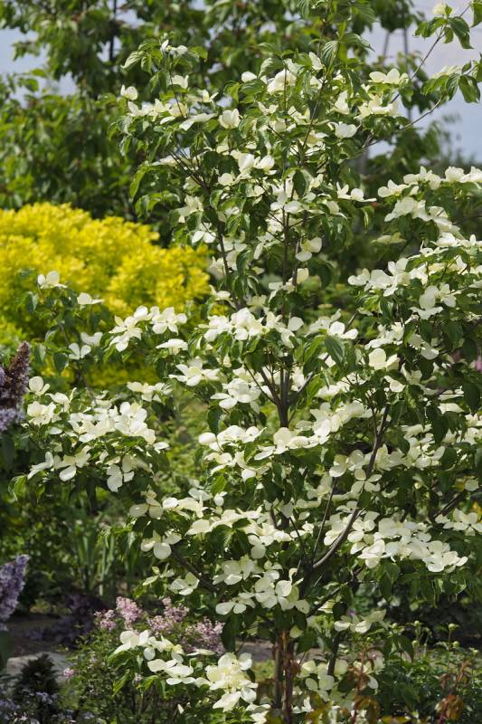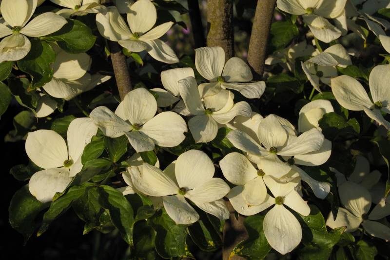 dereń Venus - krzyżówka Cornus kousa i Cornus nuttallii - odmiana o bardzo dużych i efektownych białych podsadkach kwiatowych