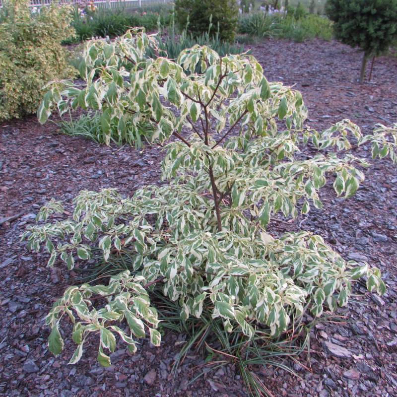 Dereń pagodowy 'Variegata "- Arboretum w Wojsławicach zdj. zrobione 06.08. 2018
