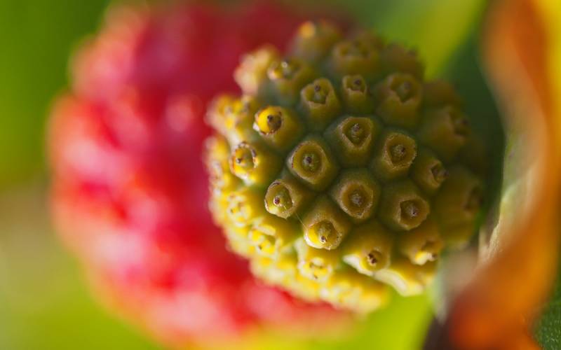 Owoce: jadalne, ale niezbyt smaczne, czerwone, kuliste, podobne do maliny