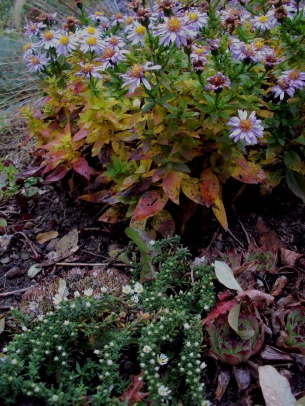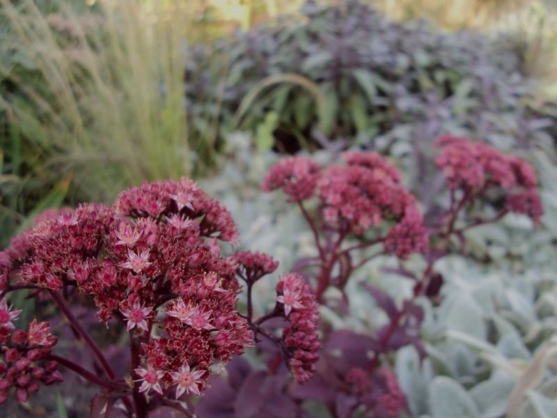 Jesienią na suchej rabacie królują rozchodniki i trawy.