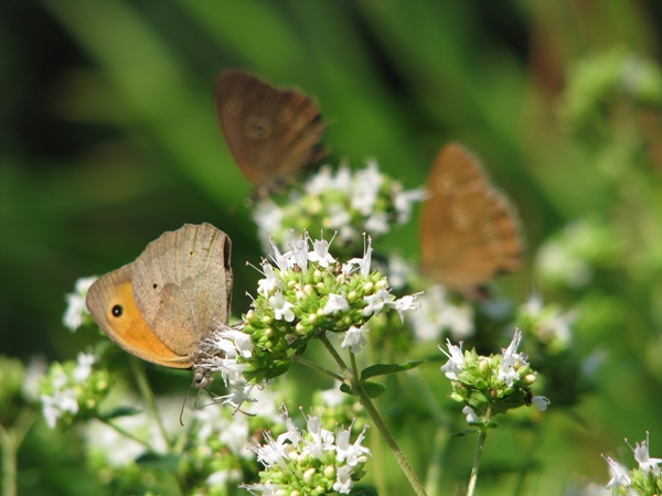 Z ogrodowych roślin u mnie największym wzięciem cieszą się łany lebiodki pospolitej -mam ją w kilku odmianach i oczywiście sama się dodatkowo wysiewa. Bzyczy, buczy i furkocze, można się patrzeć w nieskończoność.