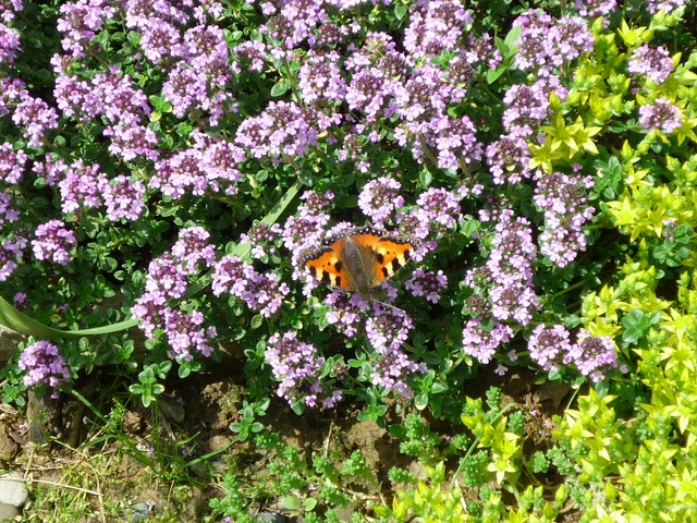 Macierzanka piaskowa jest u mnie zawsze oblegana przez pszczoły i trzmiele. Na zdjęciu tylko motylek ;)