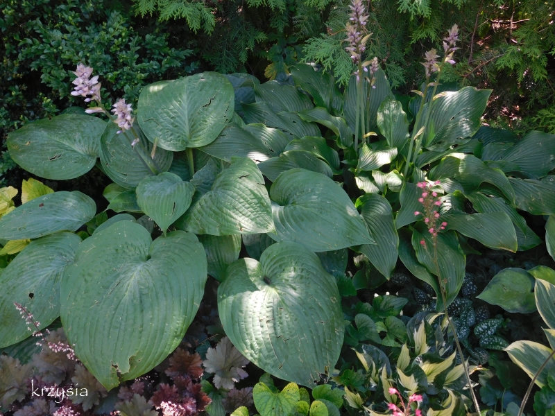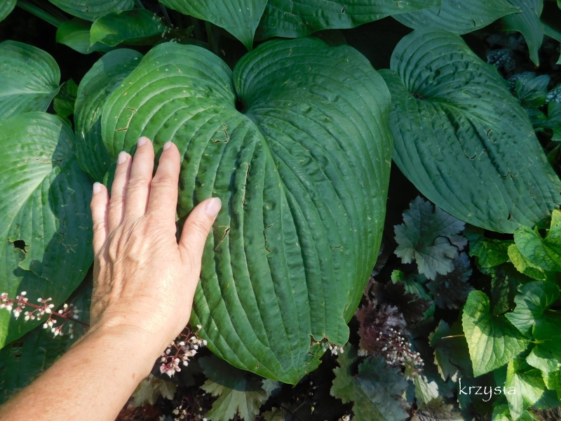 U mnie to hosta o największych liściach z posiadanych przeze mnie