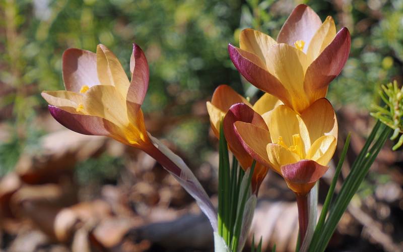 >> krokus/ szafran Pauliny (Crocus x paulinae) - naturalna hybryda (C. abatensis x C. ancyriensis) znaleziona w Turcji w roku 1995 i opisana po raz pierwszy w roku 1999 przez niemieckich botaników Helmuta Kerndorffa oraz Ericha Pasche. Jej podstawową barwą jest żółć, która stopniowo przechodzi w odcienie brązu z bordowymi refleksami.