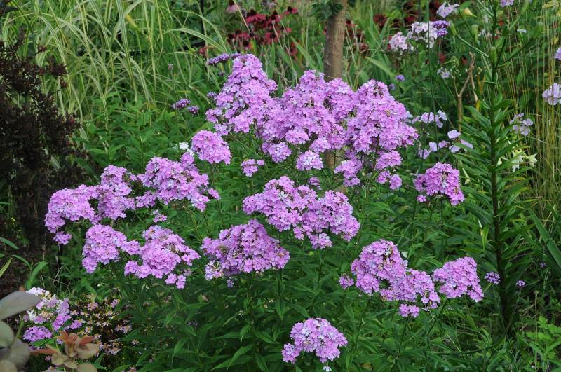Floks Arendsa 'Hesperis' Phlox x arendsii) na słonecznej rabacie trawiastej (zdjęcie zrobione bez słońca )