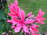 Kwiaty wiśniowo-różowe, pachnące, kształtem przypominające gwiazdki.