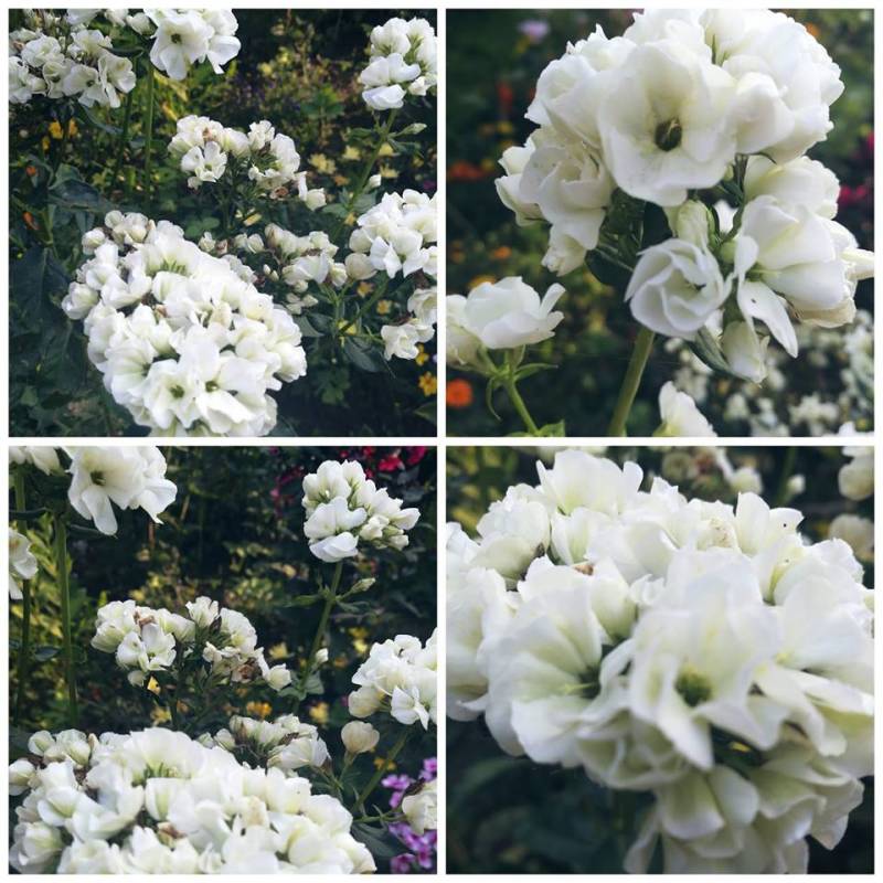 Kwiaty pachnące, półpełne, kremowo-białe, małe, do 2cm średnicy, bardzo gęsto ułożone w okrągłych kwiatostanach.