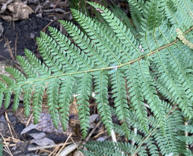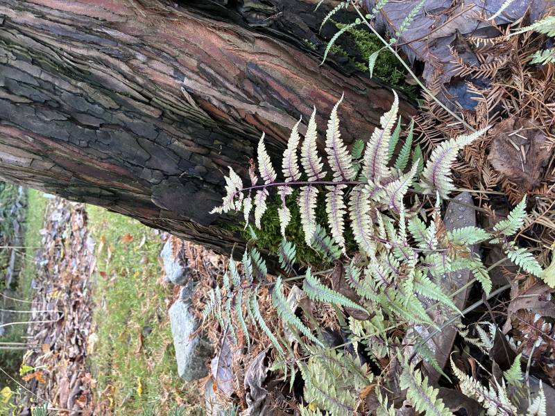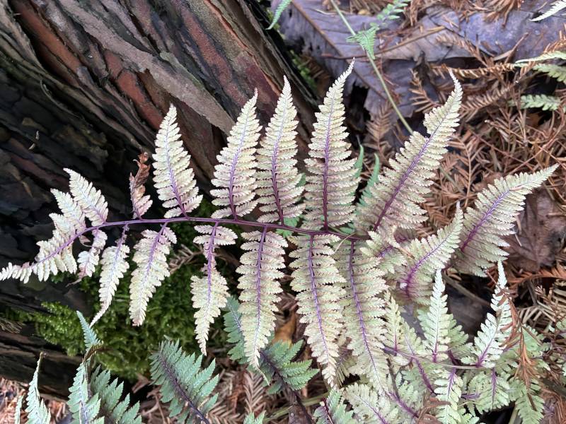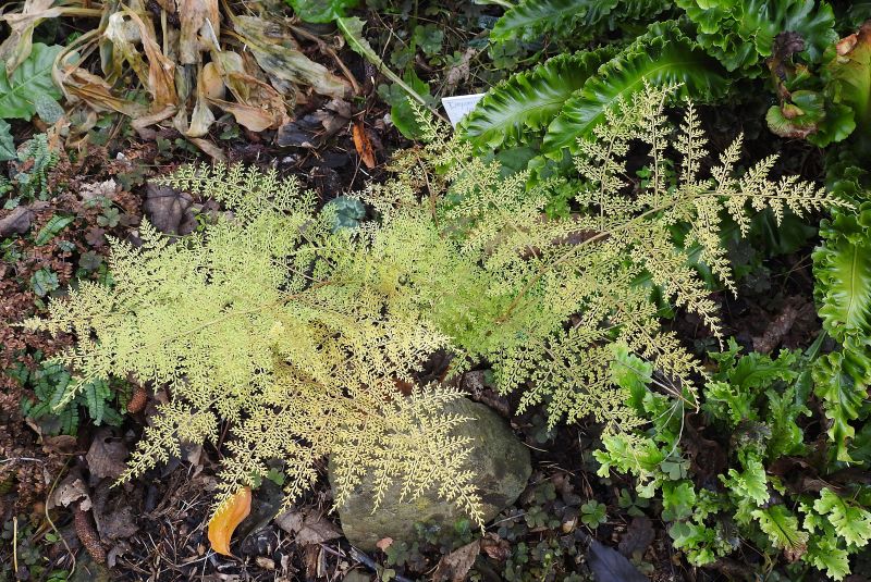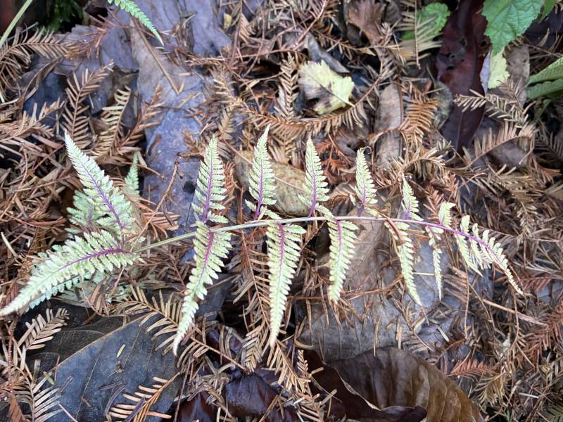 Araiostegia parvipinnata po pierwszych, niewielkich przymrozkach zmienia kolor liści na słomkowy.