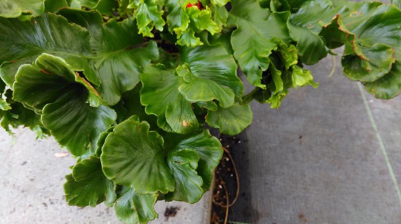 Frondy do 23 cm długości, wolno rosnący, dość szerokie liście delikatnie poszarpane na końcach pojawia się delikatna kryza.