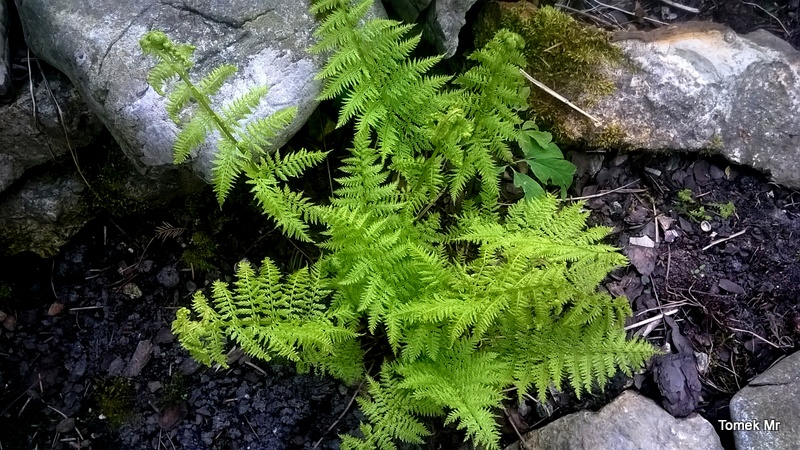 Maleńka Woodsia glabella. Zazwyczaj zanika, gdy lato jest bardzo gorace, ale odbija niezawodnie każdej wiosny. Zimuje bez zabezpieczeń, tylko pod opadłymi liśćmi brzóz