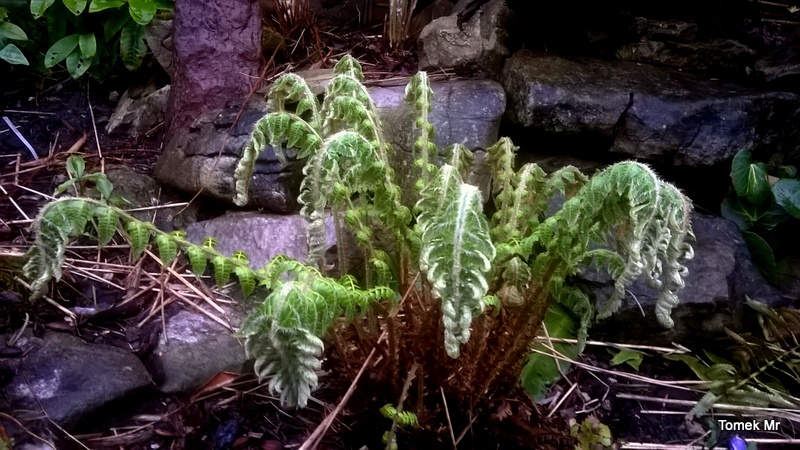 Dryopteris bushiana po dwukrotnym przemrożeniu...dzis kolejna, podobno ostatnia noc z przymrozkami.