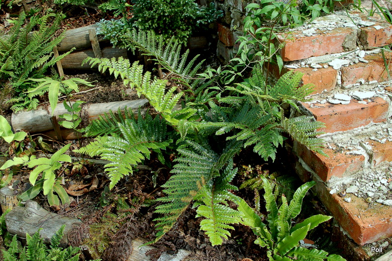 Wąwozik rodzaju Athyrium, gdzie panuje pomieszanie z poplątaniem a wszystkie wietlice rosną razem