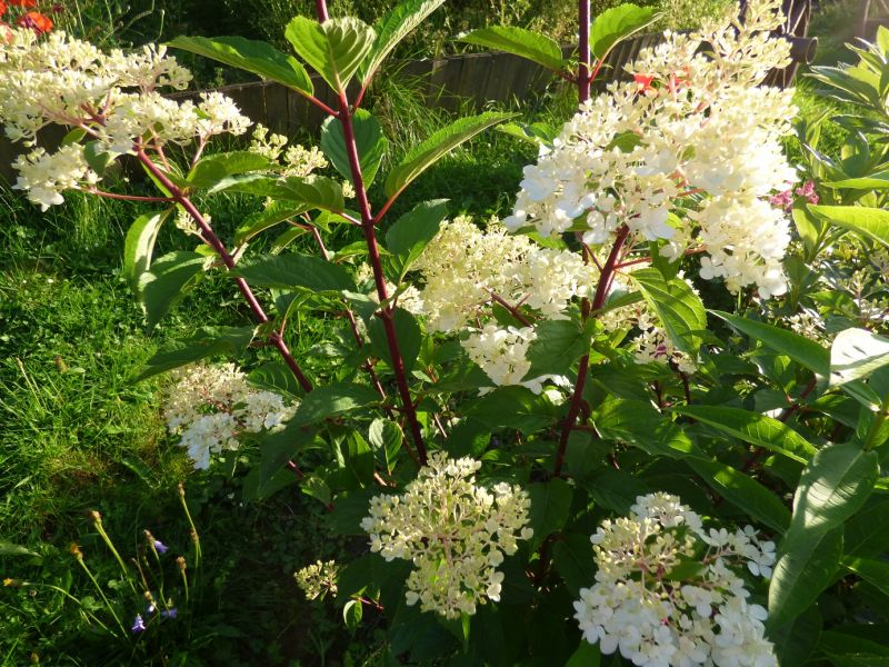 Jedna z ładniejszych odmian. Ogromne kwiatostany, które przebarwiają się bardzo specyficznie a ponadto ma piękne czerwone pędy. Młode rośliny mają kłopoty z utrzymaniem ogromnych kwiatostanów. Starsze radzą sobie nieco lepiej, ale i tak rozkładają się na boki.