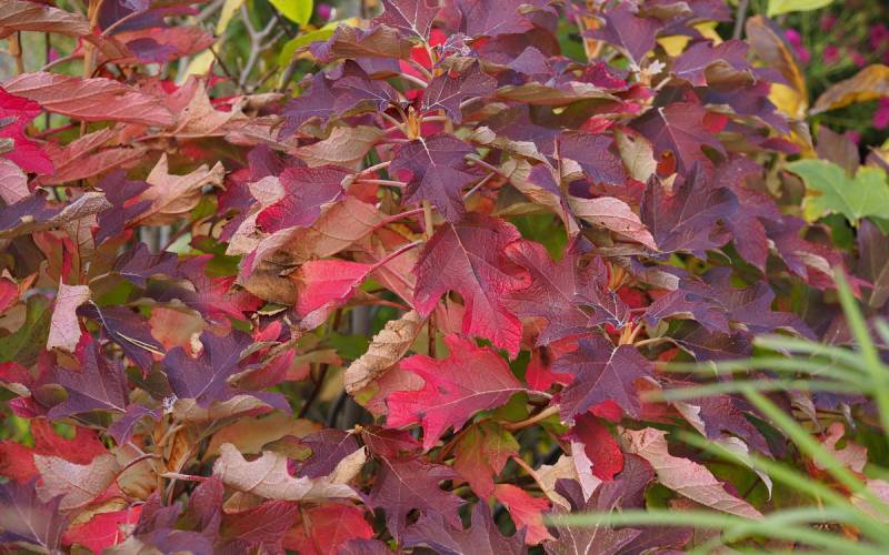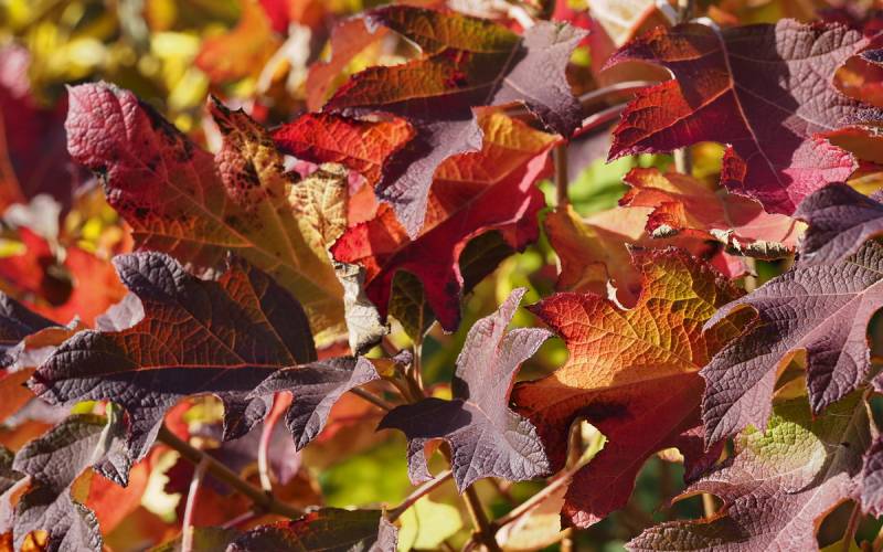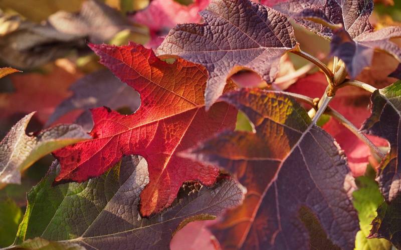 Hortensje dębolistne niesamowicie wybarwiają się jesienią. Zdjęcie nie jest podkoorowane!