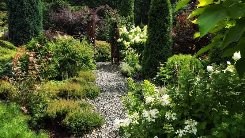 Kamienne ścieżki wśród kwiecistych rabat