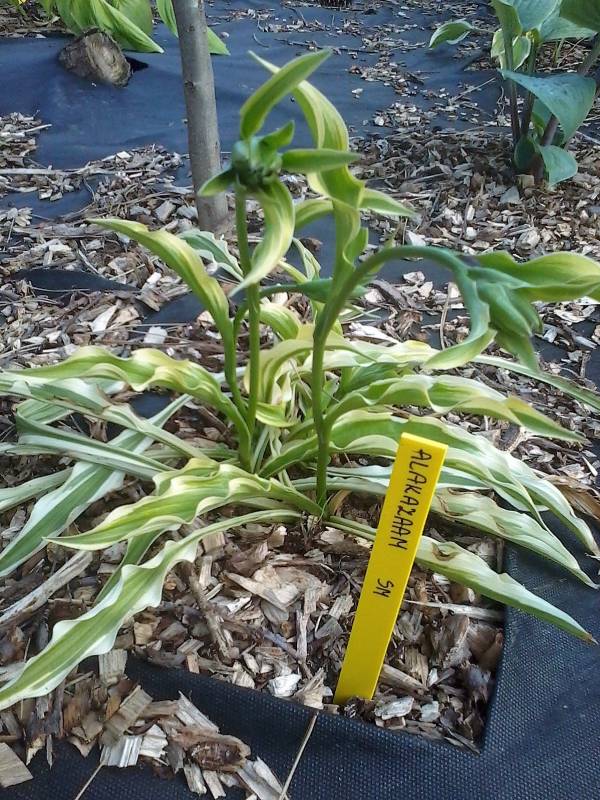 Oddzielony 2 lata temu zielony odrost od Hosty Paradise Island ...przypominający hostę Bonfire powinien niedługo zakwitnąć: