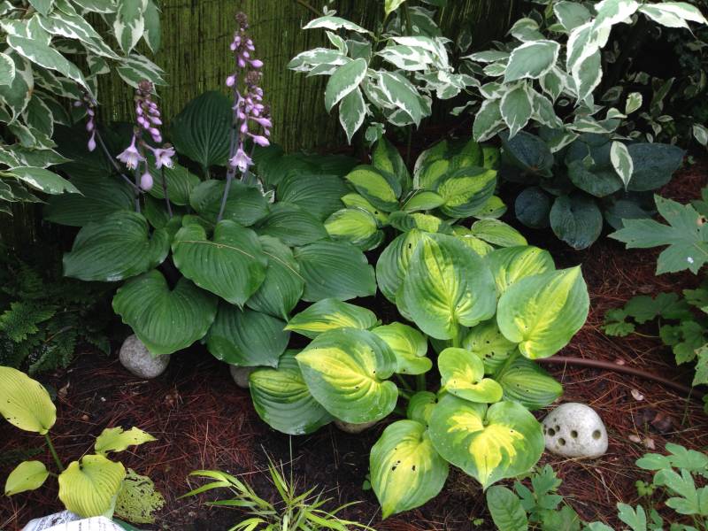 Małe hosty kwitną pięknie, Devon Gold.