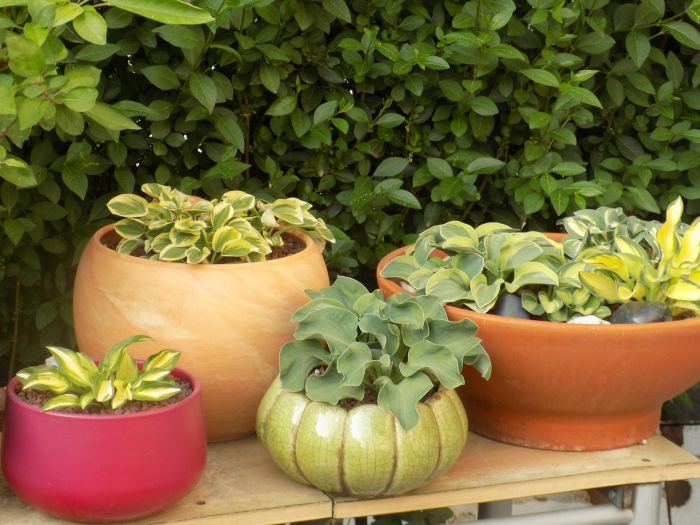 Swoje zaraz po zakupie najpierw posadzilam w podloze,ale nie podobaly mi sie,bo ginely wsrod innych host i roslin.Postanowilam poprzesadzac je do donic i mam teraz maly zakatek donicowo-hostowy gwizdac