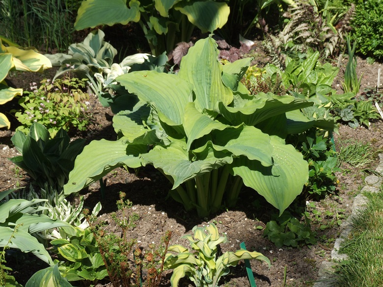 Es war hier sehr trocken und es gab noch nicht viele Schnecken. Die Hosta sind so schön wie noch nie.
