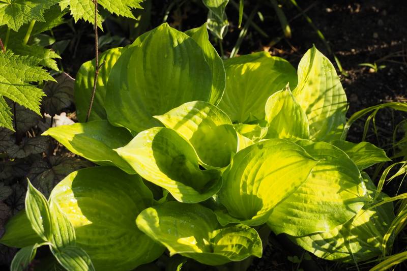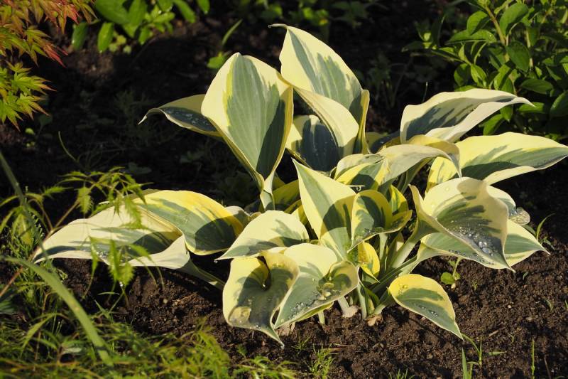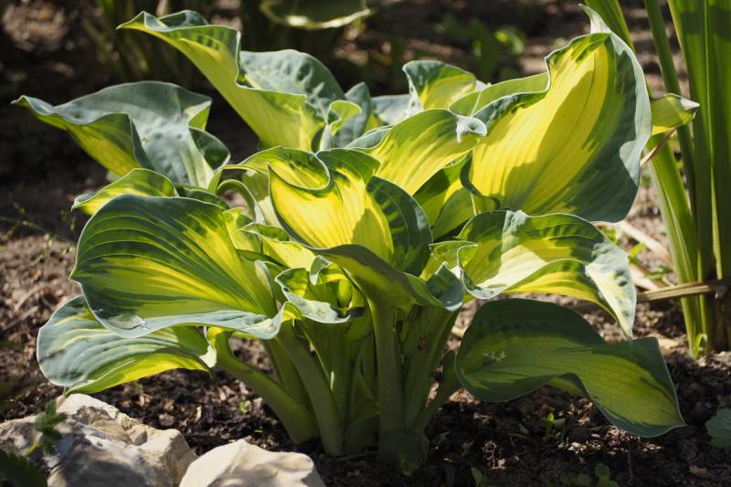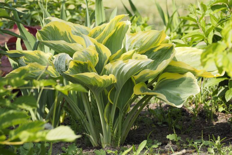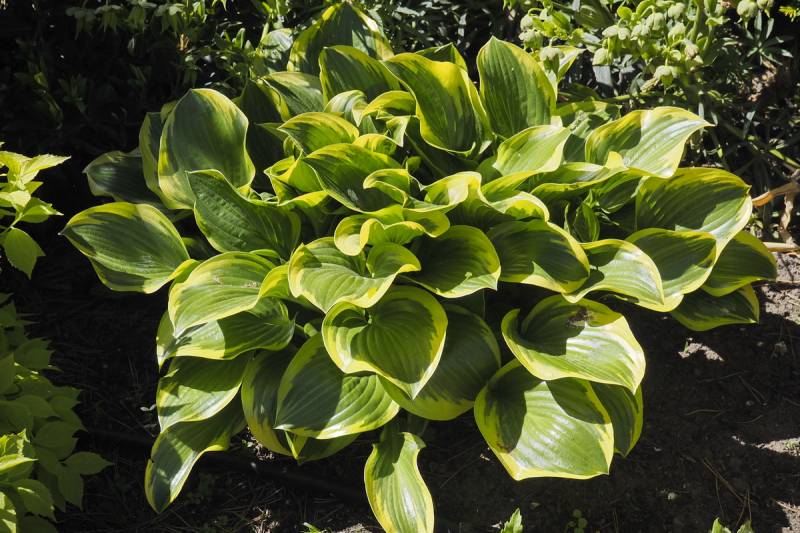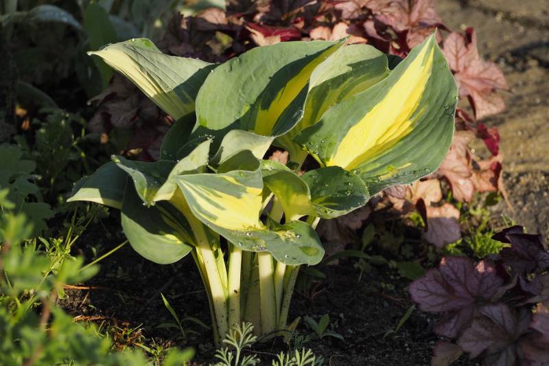 Hosta ' Harry van de Laar ' doskonale "daje radę" w pojemniku...