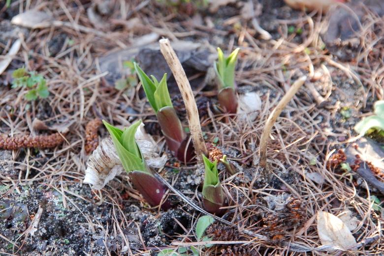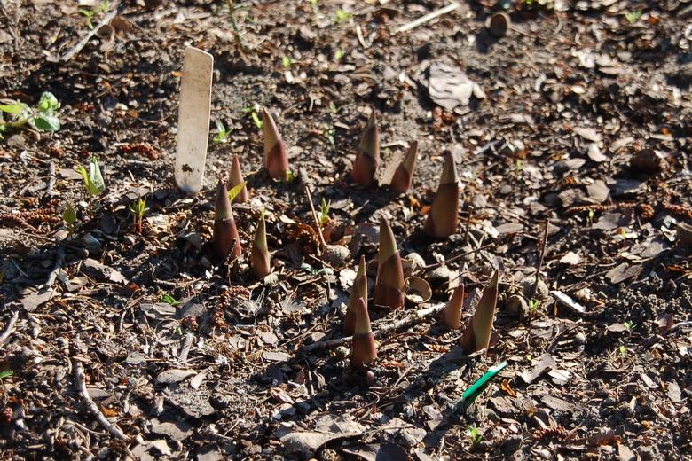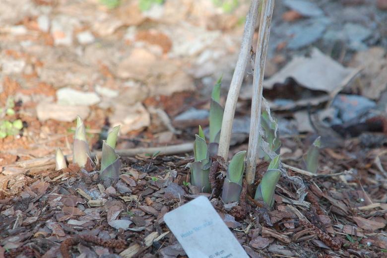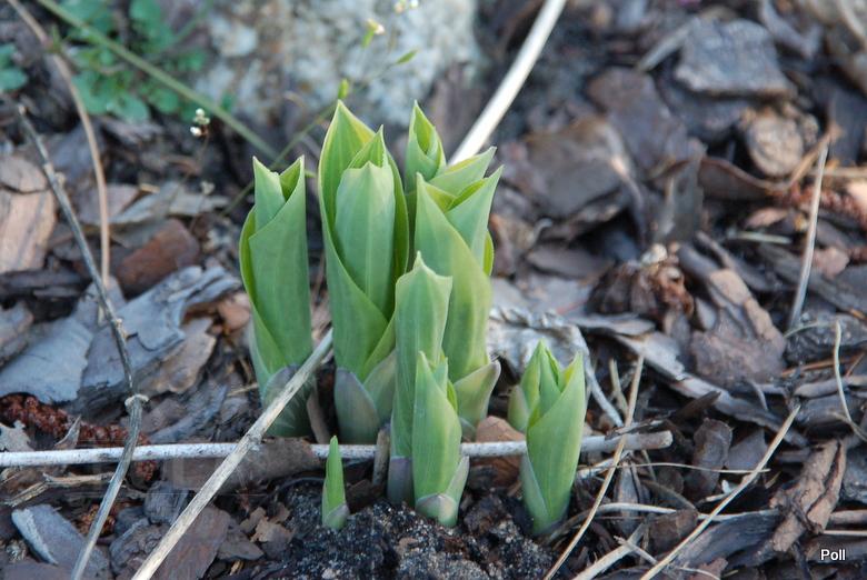 Te, które zasypałam przed wyjazdem grubo korą i którym się tak bardzo nie spieszyło, więc dopiero wystawiły czubeczki kłów, mają szansę na prawidłowy rozwój....O ile matka Natura znów nie wróci z przymrozkami. Do Zimnej Zośki jeszcze miesiąc!