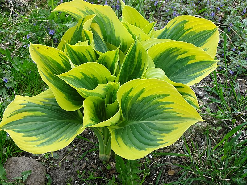 Ja mam tylko 2 kępki tej samej hosty, niestety nie znam odmiany ale jest piękna :) Co roku niezawodnie wychodzi i kwitnie fioletowymi kwiatuszkami.