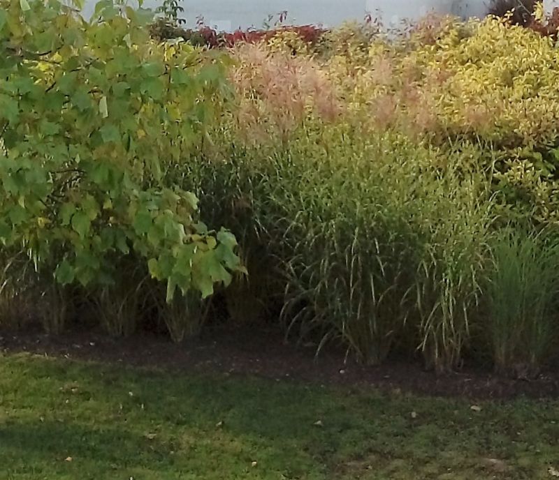 Poniżej związane palczatki miotlaste, które często już jesienią się pokładają, ale problem ten występuje np. u pros, czy trzęślic, miskanty raczej sobie radzą :)