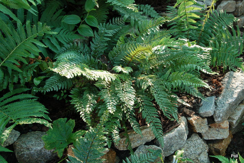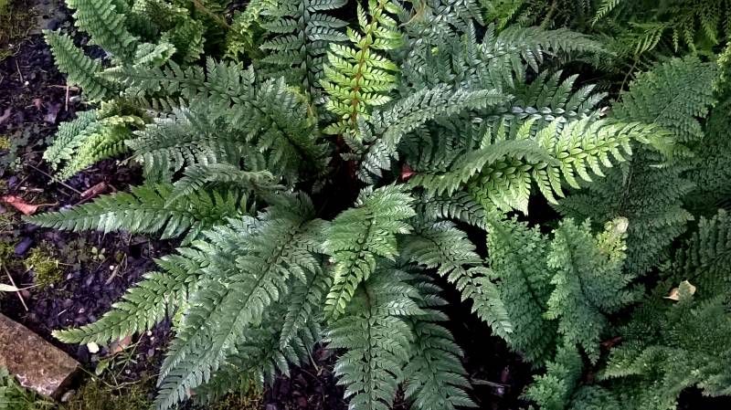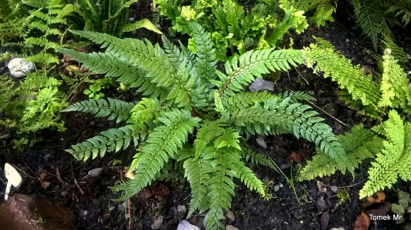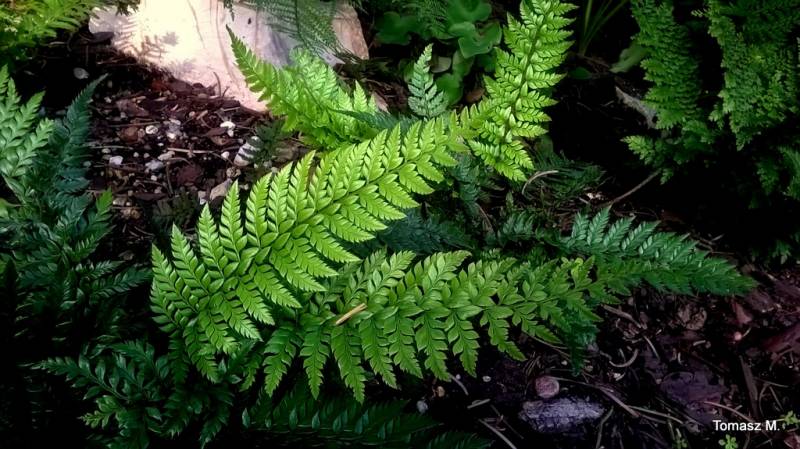 Jak każdy paprotnik, prawda? Ja zrobiłam ujęcie tak, by było widać Polystichum neolobatum (po prawej) i odmianę, 'Shiny Holy' (po lewej)