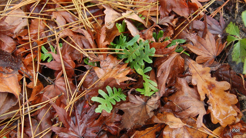 Polypodium cambricum Hornet zostały przysypane opadłymi liśćmi. Niewiele przyrosła przez kolejny sezon.