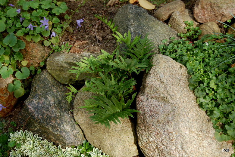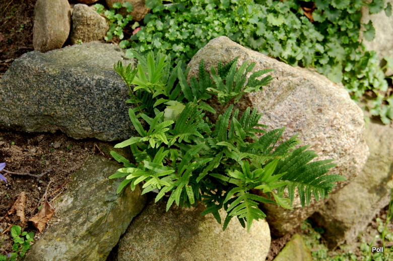 Polypodium vulgare już na poczatku V. Po ukazaniu się nowych liści zaleca się usuwanie starych, 'zimowych' , ale tylko, aby poprawić wygląd rośliny.