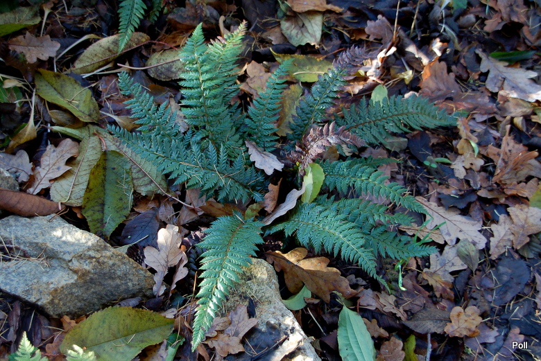 Polystichum neolobatum, choć młodsze, przezimowało o niebo lepiej.