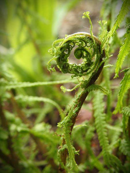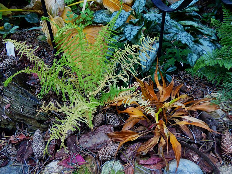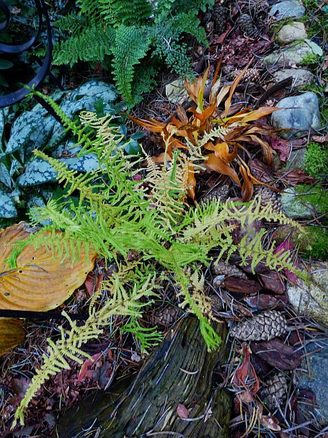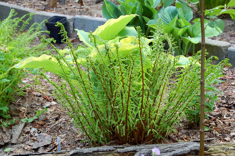 Paprocie tej odmiany, które rosną u mnie (mam ich kilka sztuk), faktycznie wiosną wypuściły dość jasne liście, które teraz, z upływem czasu ciemnieją, także łodyżki przybrały inny, ciemniejszy kolor podbity czerwienią. Być może bardziej dojrzałe będą całkowicie czerwone.