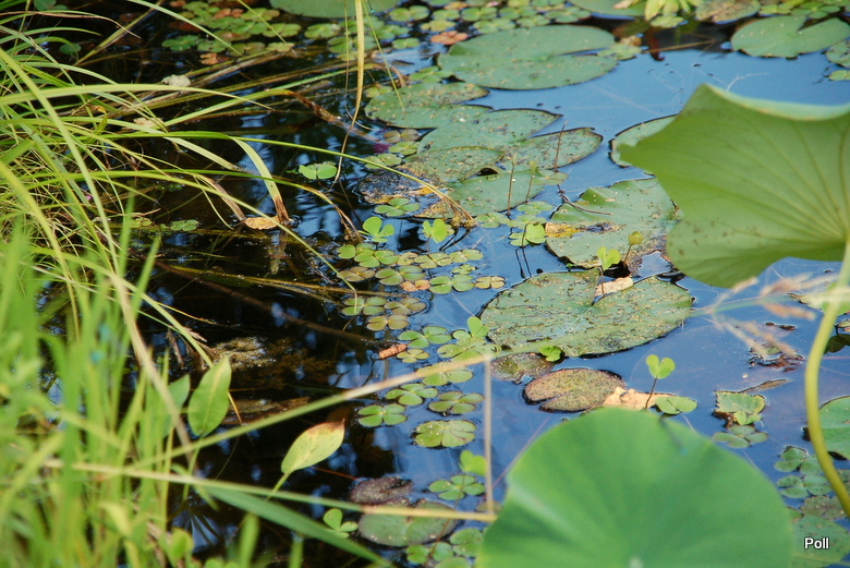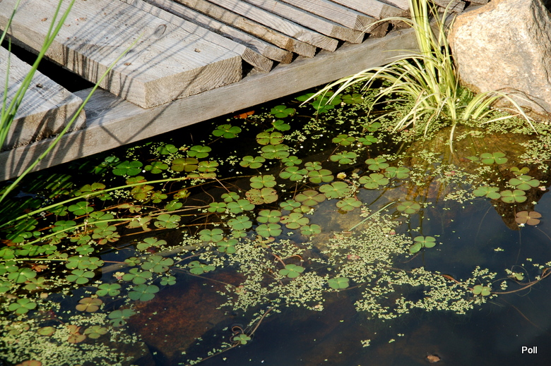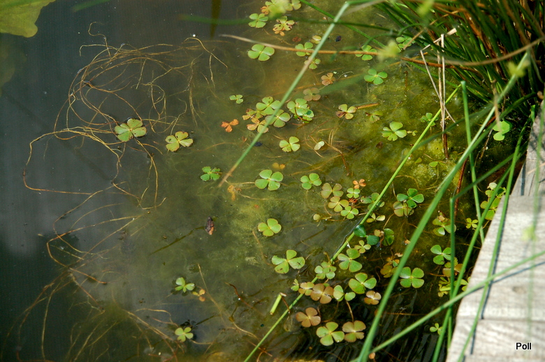 Marsilea quadrifolia rezyduje na słonecznym stanowisku, w specjalnie dla niej zbudowanym bagienku .
