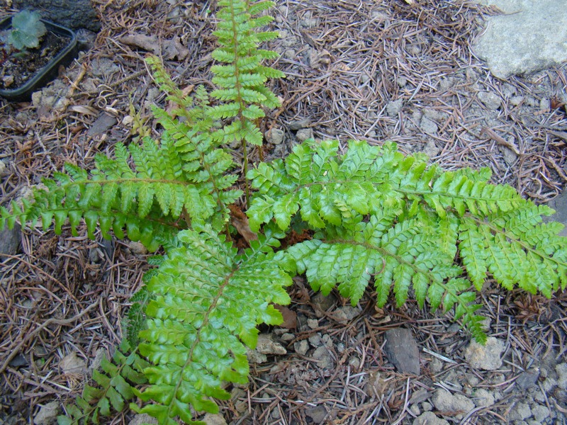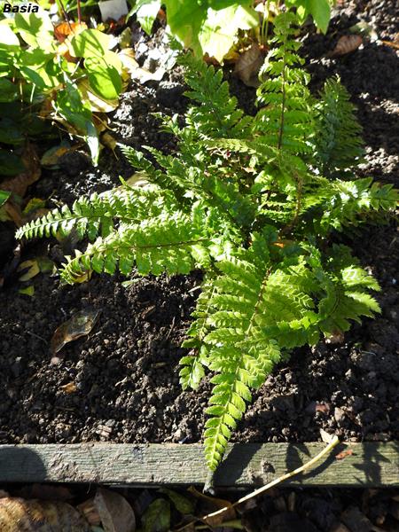 Polystichum polyblepharum kupiłam tego roku wiosną. Lato spędził zadołowany pod cieniówką, ja to miejsce nazywam 'przechowalnią' :P
