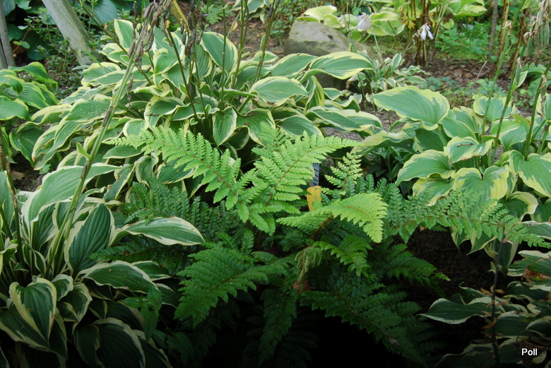 Moje dwa egzemplarze na starym hostowisku, w końcu chyba się zebrały po podmrożeniach 2 lata temu. :) Wypuszczają coraz dłuższe frondy i znów wyglądają na paprocie, nie ogryzki. :lol: