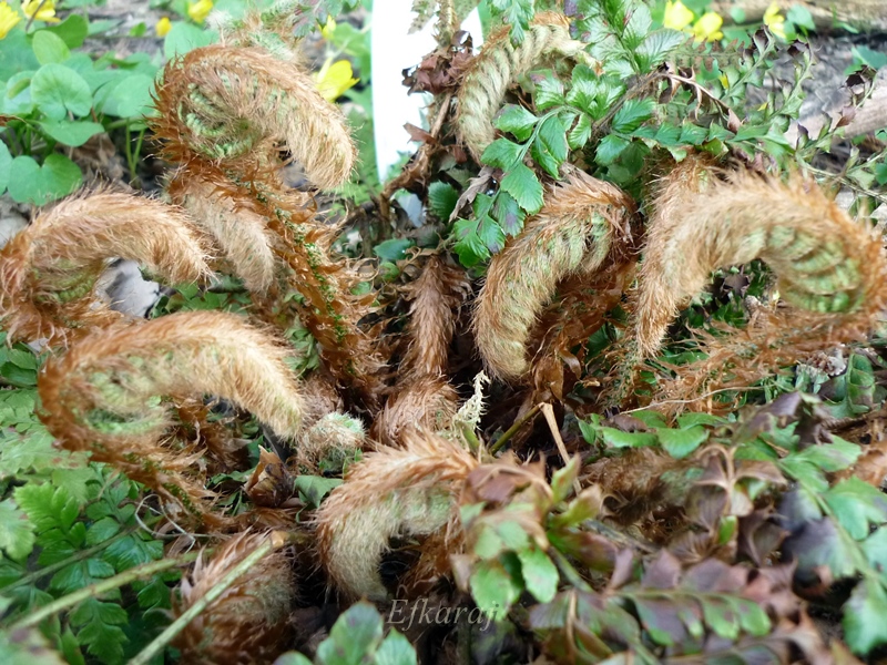 W ubiegłym roku mój najstarszy Polystichum polyblepharum mocno podmarzł podczas wiosennych przymrozków. Pastorały były krótkie, drobne i w małych ilościach. Za to w tym roku zanosi się, że całkowicie się zregenerował.