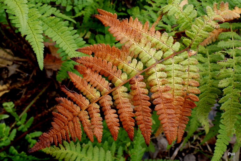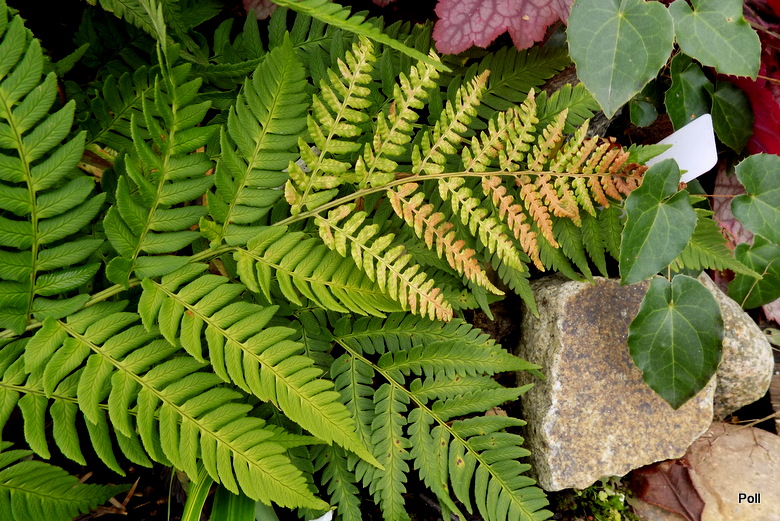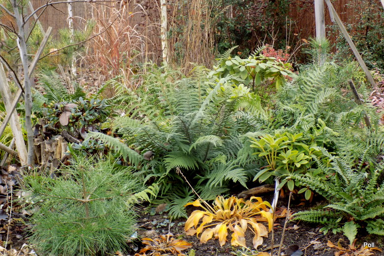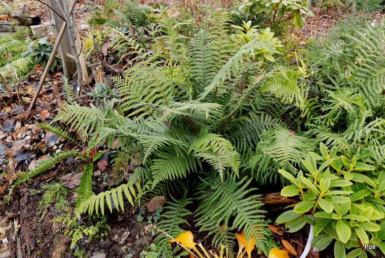 Gdyby ktoś mnie zapytał, jakie paprocie poleciłabym, aby zdobiły ogród także jesienią, bez wahania odpowiedziałabym: paprotniki (Polystichum) i nerecznice, ale tylko z gatunku Dryopteris affinis, czyli nerecznicy mocnej. Obserwując swoje paprocie widzę, iż nerecznice męskie Dryopteris filix-mas są bardziej wrażliwe na zmiany warunków pogodowych - ich liście potrafią ciemnieć brzydko a bardziej kruche łodygi wyłamują się dość szybko ( w tym wyłamywaniu mistrzem jest inna nerecznica - Dryopteris celsa, której wystarczy nieco śniegu , większy wiatr i zlega plackiem na ziemi :dry:). Nerecznice mocne - zarówno gatunek, jak i odmiany, trzymają długo fason a przymrozki (ostatnio ok -6C), spływają po nich, jak woda po makreli :diabelek