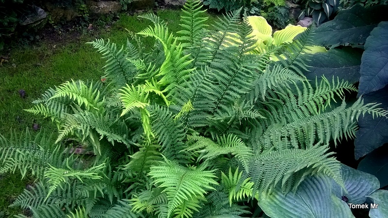 ...nieskazitelny !!! Także inne, widoczne na zdjęciach paprocie-odmiany nerecznicy mocnej, nie noszą śladów uszkodzeń, mimo, że rosną na stanowisku bardziej odsłoniętym, niż reszta