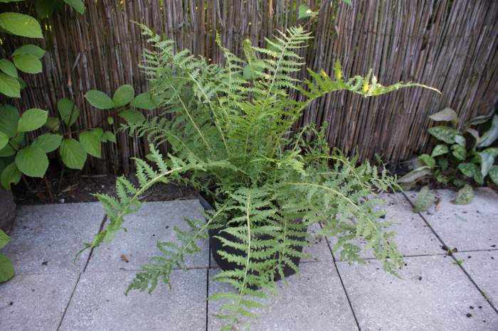 'Erosa', jak inne pióropuszniki strusie rozlazi się w każdym kierunku, wiec zaczęłam go nieco przerzedzać, zwłaszcza tam, gdzie zagraża jakiejś innej roślinie.