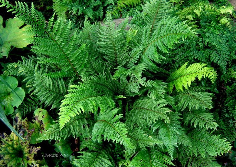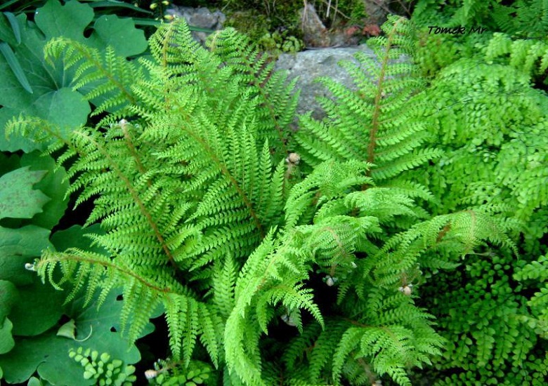 Polystichum setiferum w towarzystwie Adiantum venustum.
