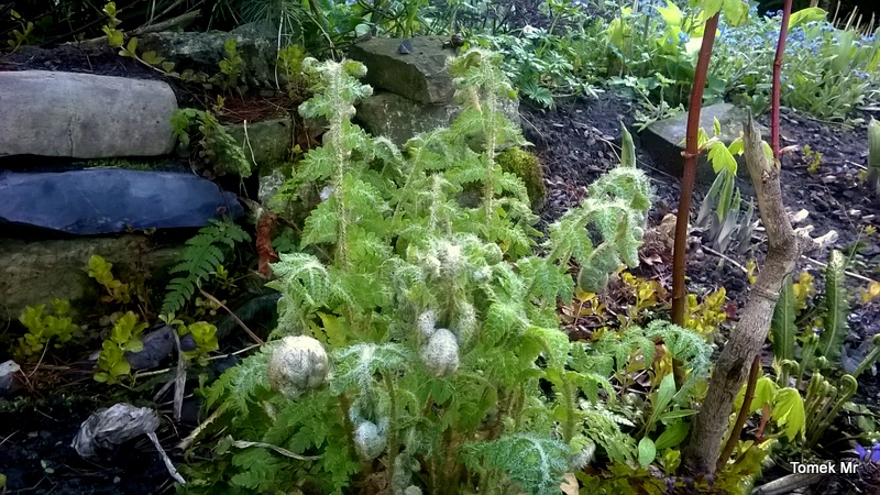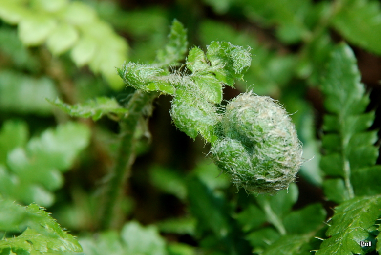 Polystichum microchlamys nie stracił w wyniku przemrożenia tylu pastorałów, co Polystichum retrosopaleaceum ( na fotce, po prawej) i spokojnie się rozwija