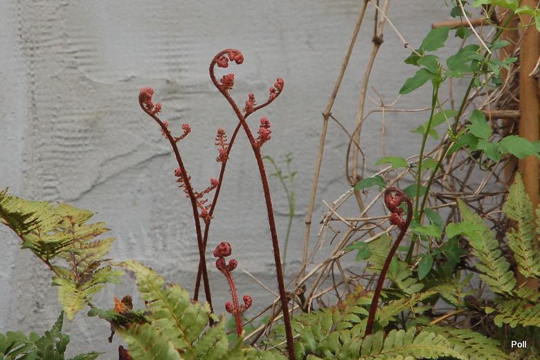 Przyznam, że miałam wyrzuty sumienia, bo jesienią zapomniałam o tej nerecznicy i zimowała całkowicie bez zabezpieczenia. Nic sie nie stało jednak i Dryopteris purpurella ładnie wystartował w nowy sezon
