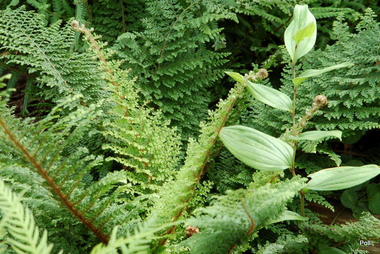 Polystichum setiferum "Plumosum densum" na półcienistym stoku paprociowym