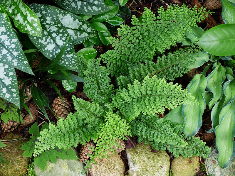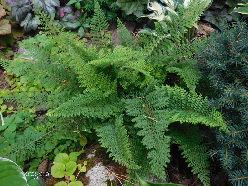 Mój Polystichum setiferum 'Plumosum densum' w szerszym kadrze i szerszym towarzystwie... po korekcie stanowiska :)