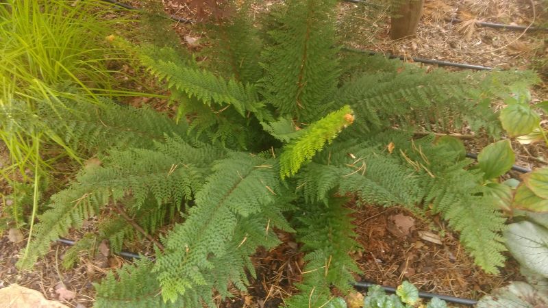 Polystichum setiferum 'Plumosum densum' szaleje w tym roku. Chyba trzeba będzie zabrać to wszystko, co rośnie obok