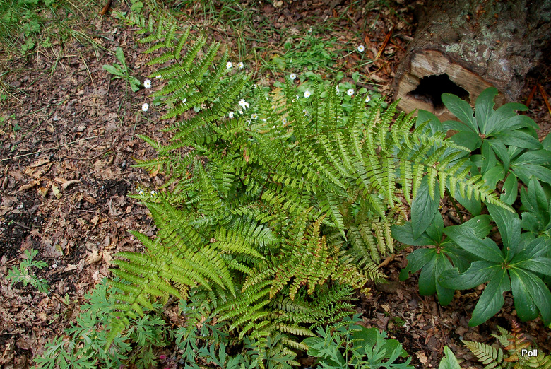 Dryopteris erythrosora Prolifica na mocno cienistym, wilgotnym stanowisku