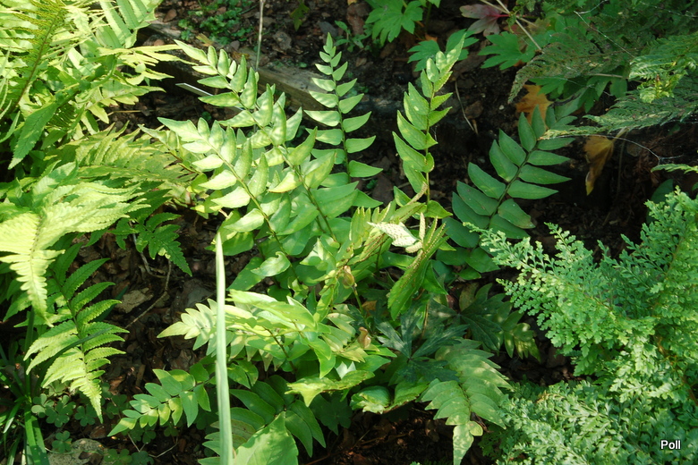 Cyrtomium lonchitoides na stanowisku w mocnym cieniu leszczyn nie ucierpiało od przymrozków. Gorzej, że w tym miejscu buduje się lekko wzniesiona rabata i będzie musiało zmienić miejsce.