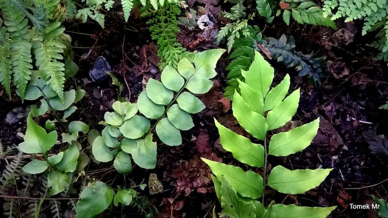 Dla porównania liść Cyrtomium lonchitoides (z lewej strony) i Cyrtomium fortunei