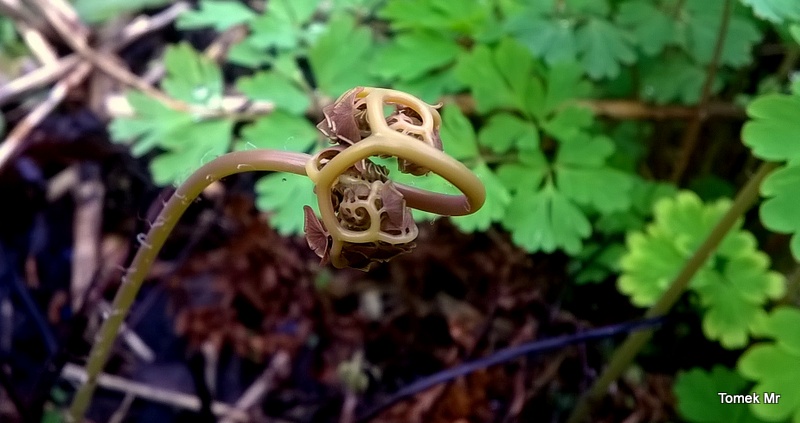 Jej liście, przypominają kształtem rozpostarte dłonie lub ażurowe parasole osadzone na brunatnych, cieniutkich łodyżkach. Wiosenne kolory młodych frondów są zachwycające: mają jasnozielona barwę, zaś końcówki listków, przybierają ciepły rudy odcień .